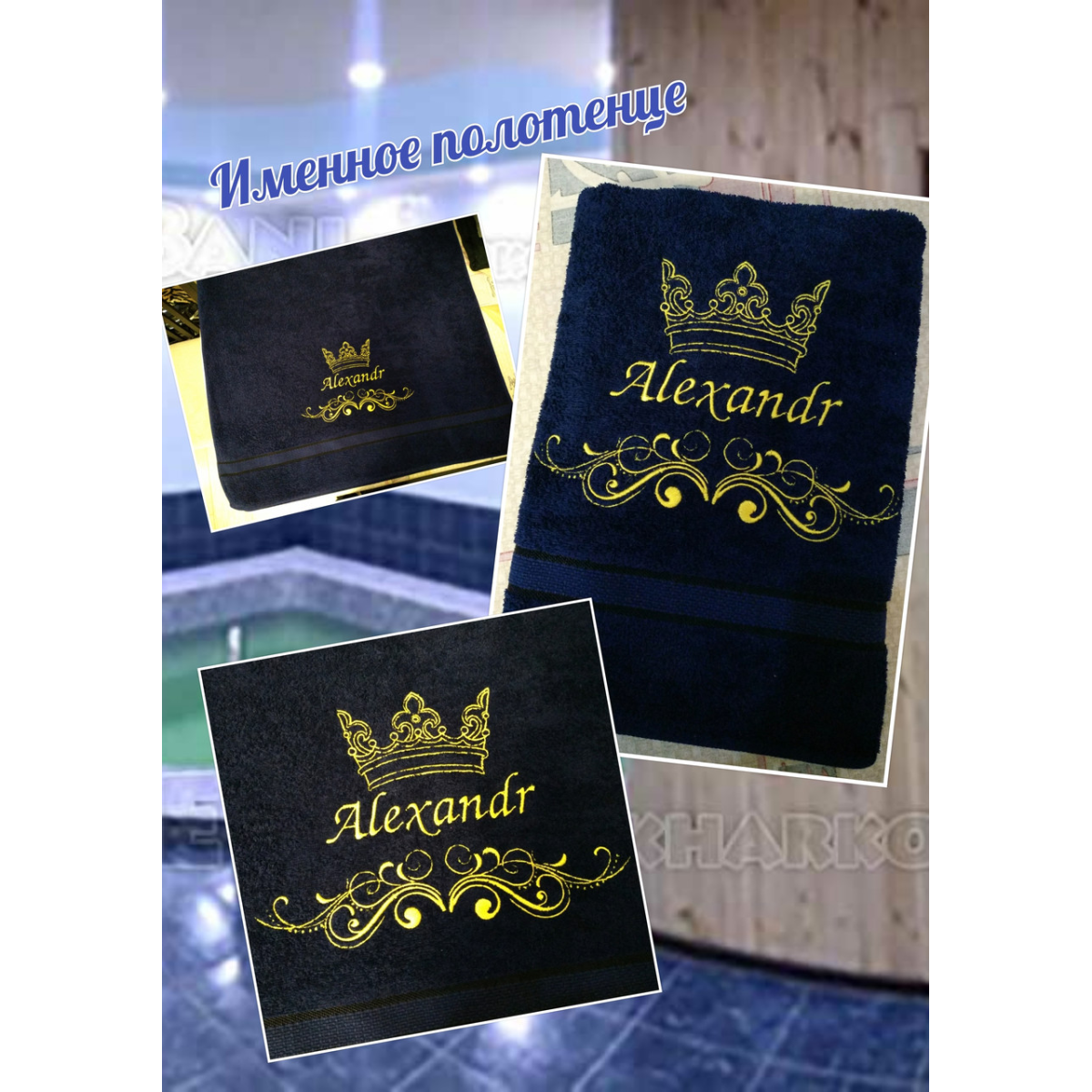 Іменний банний рушник бавовна золото 70х140см Aleхandr