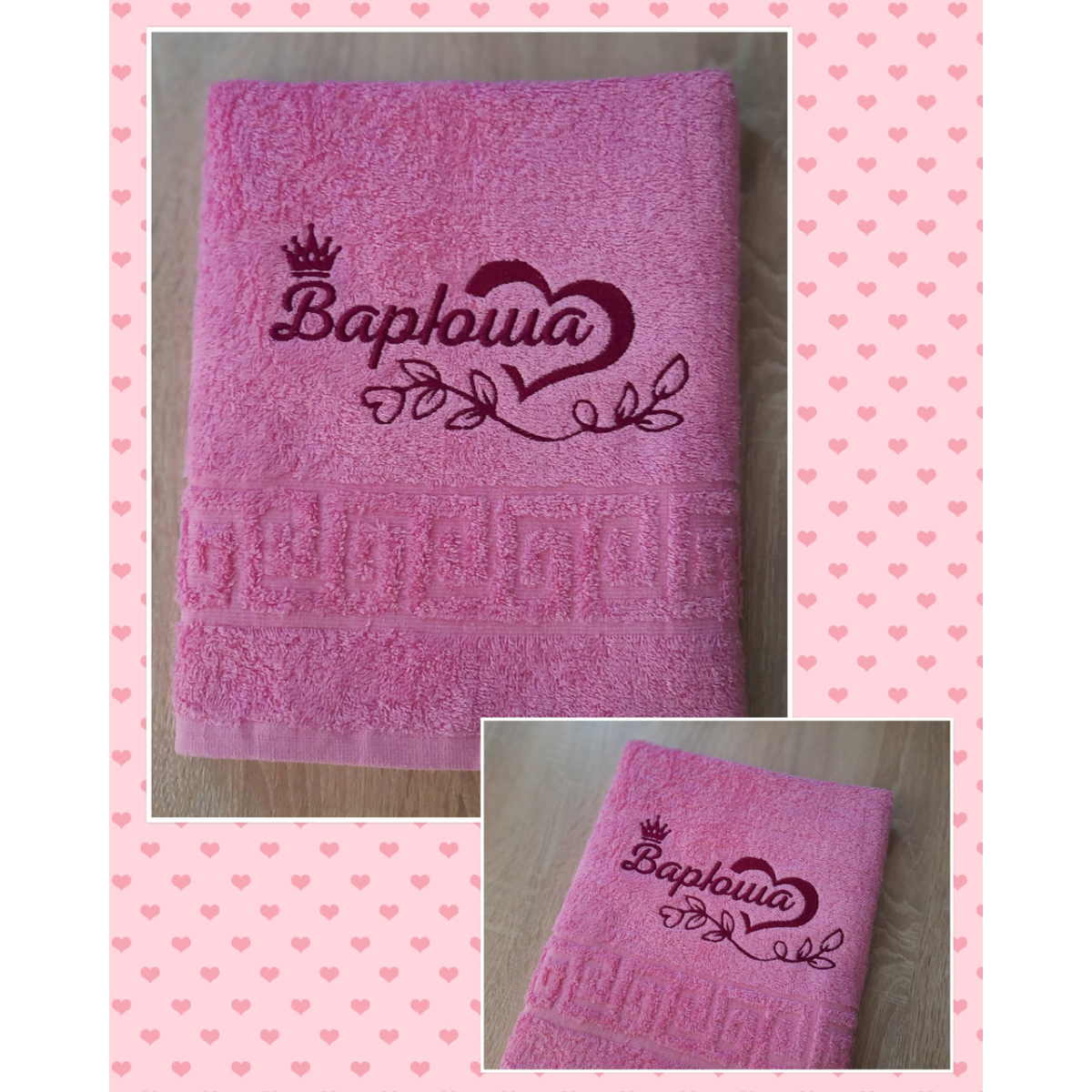 Іменний рушник 50х90см 100% бавовна Варюша рожевий