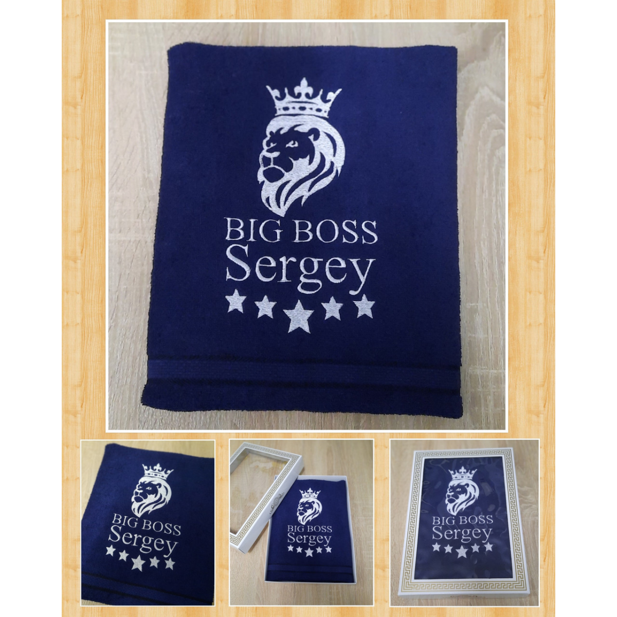 Іменний рушник 50х90см 100% бавовна Сергій синій