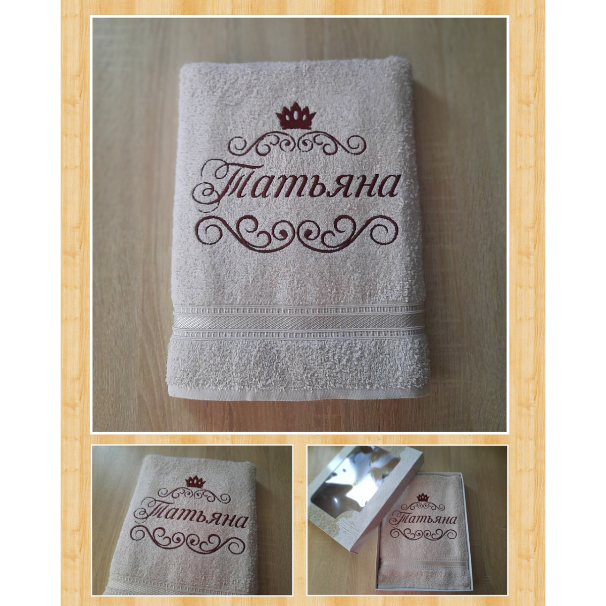 Іменний банний рушник бавовна 70х140см Тетяна беж