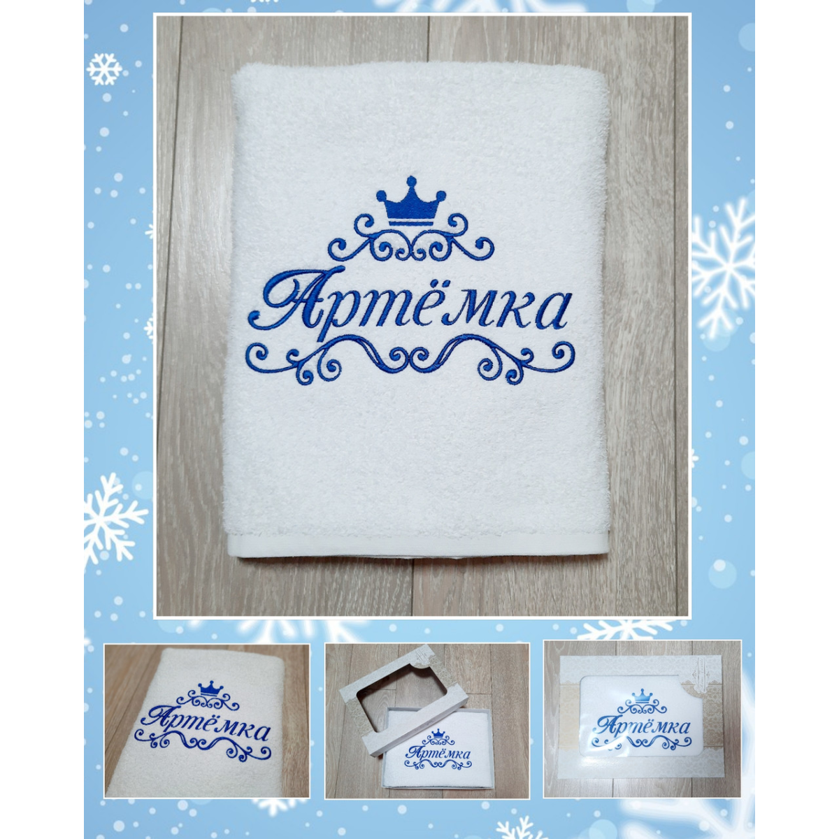 Іменний банний рушник бавовна 70х140см Артёмка білий