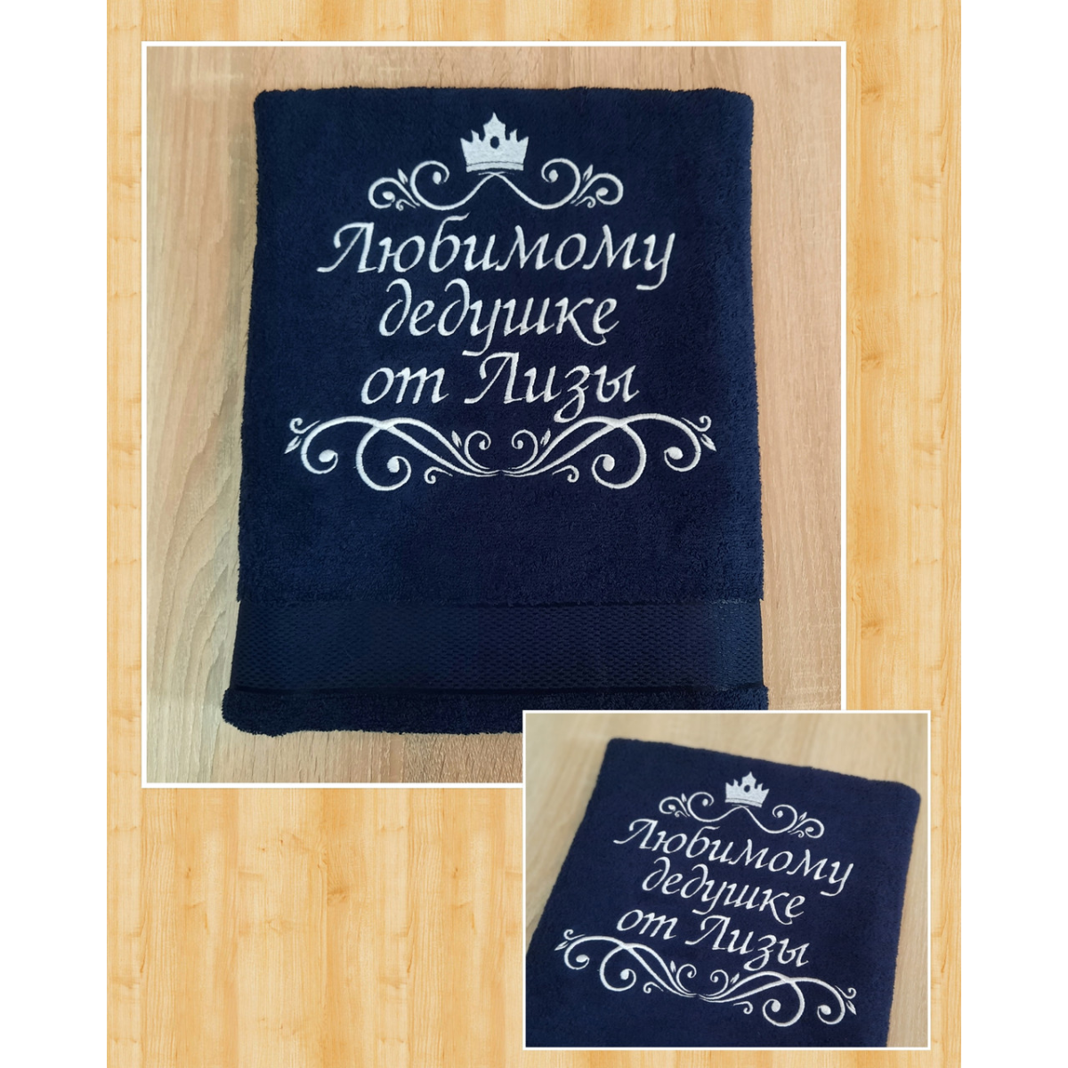 Іменний банний рушник бавовна 70х140см Любимому дедушке от Лизы синій