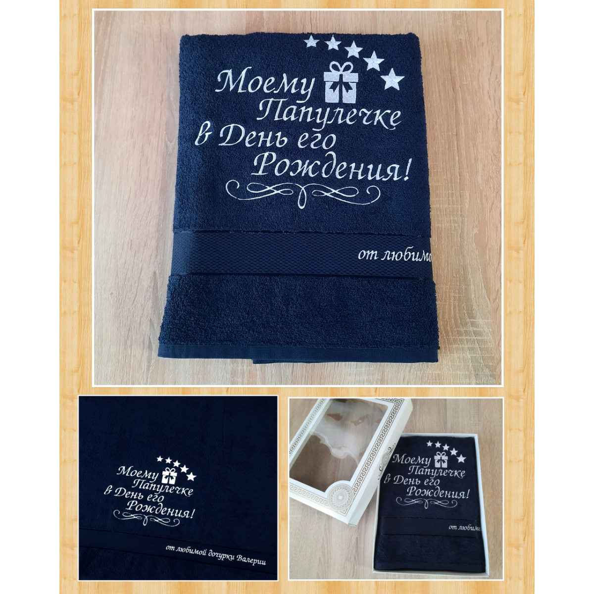 Іменний банний рушник бавовна 70х140см Папуле в День народження синій