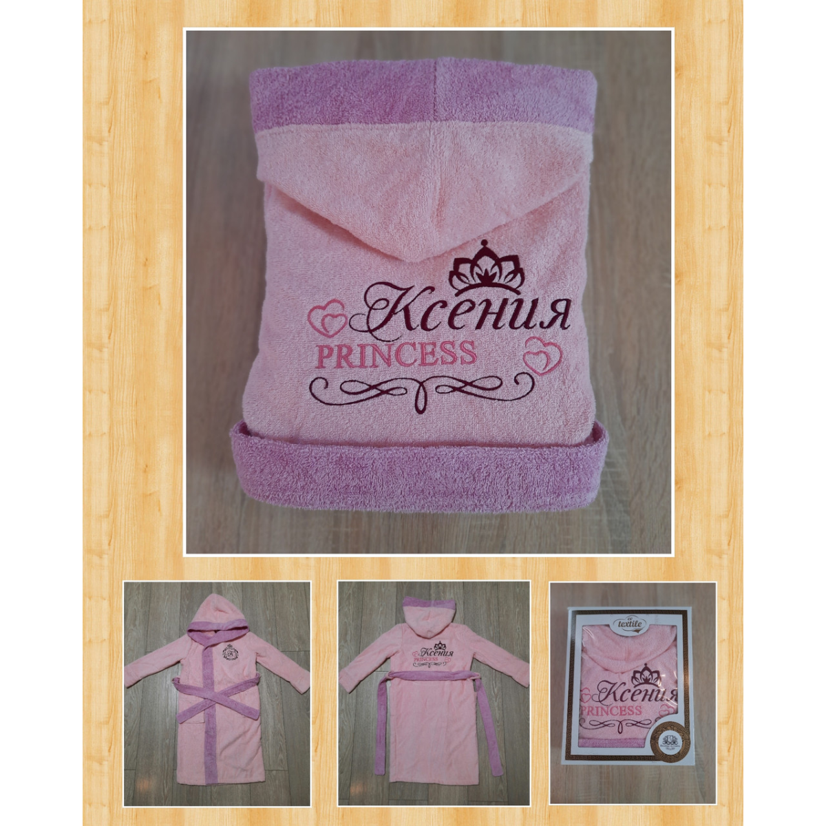 Іменний дитячий банний халат 100% бавовна Ксенія принцесса рожевий
