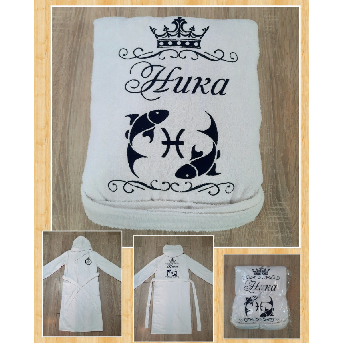 Іменний банний халат 100% бавовна Ніка білий
