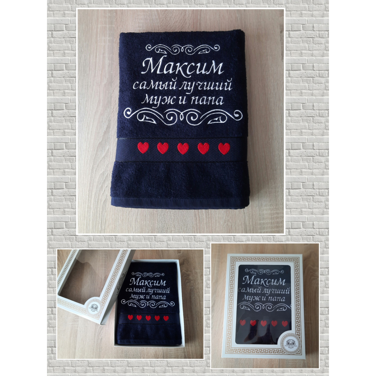 Іменний банний рушник бавовна 70х140см Максим чоловік і тато синій