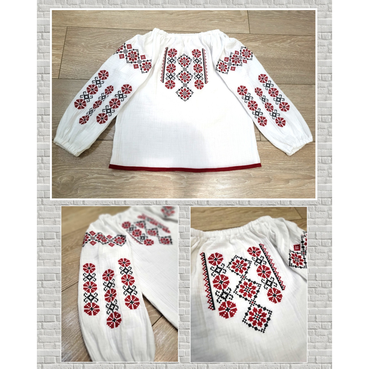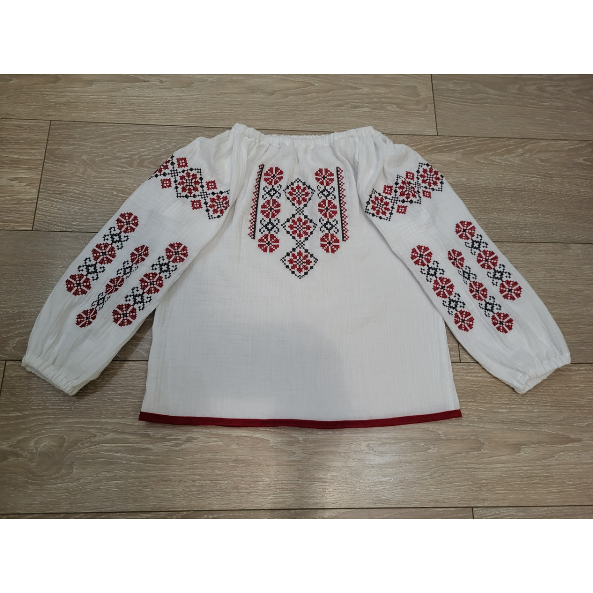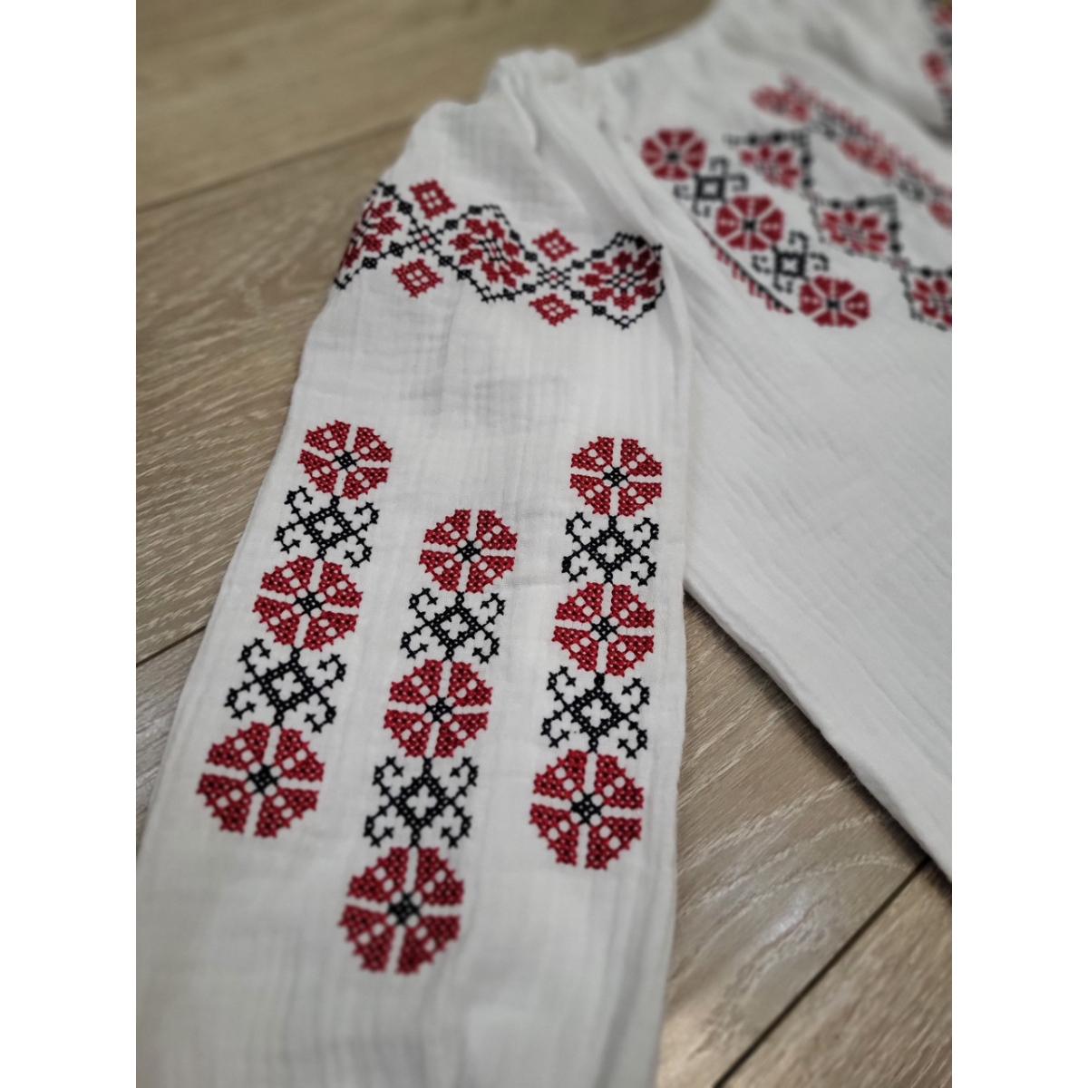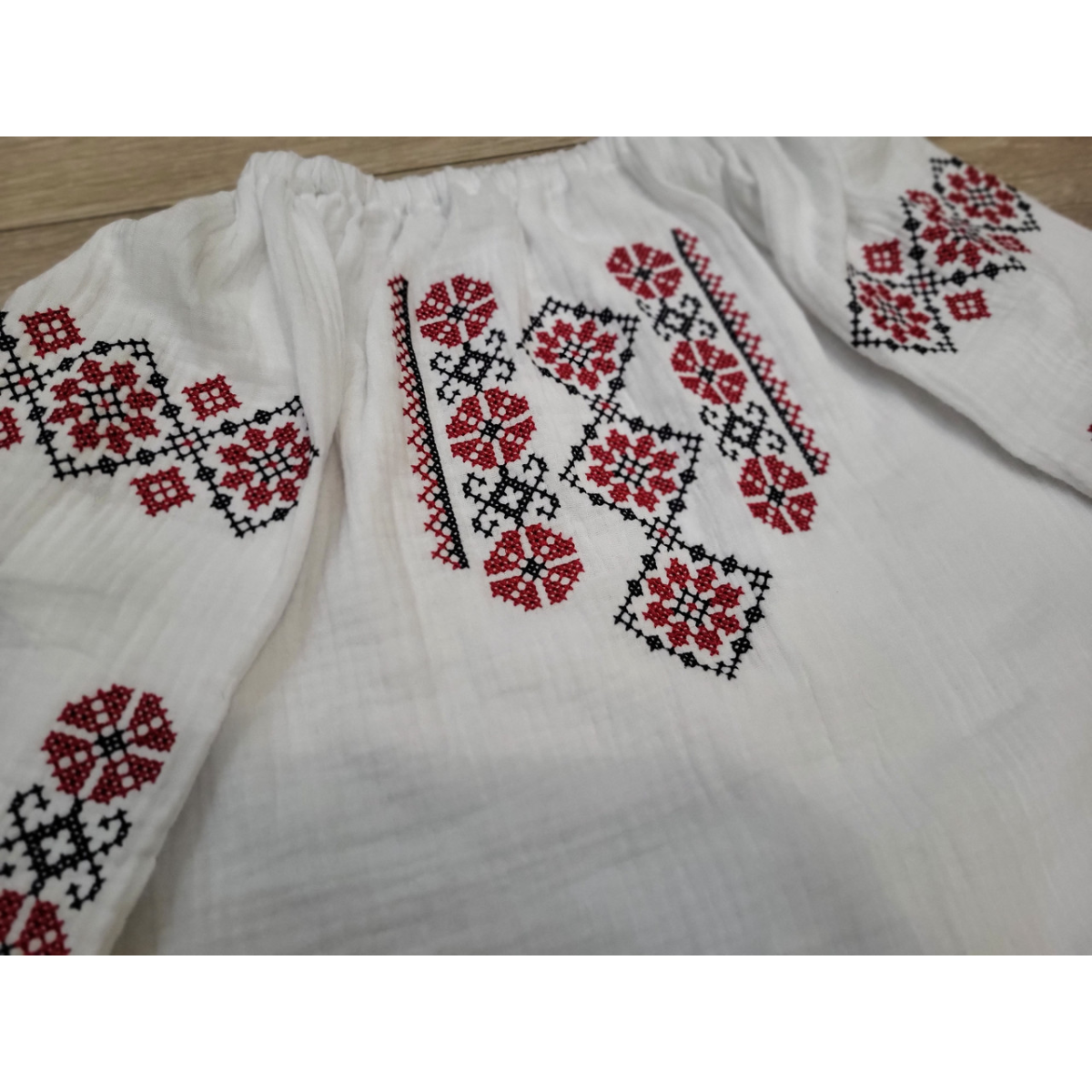 Вишиванка дитяча червона Ксенія з мусліну, бавовна, натуральна тканина