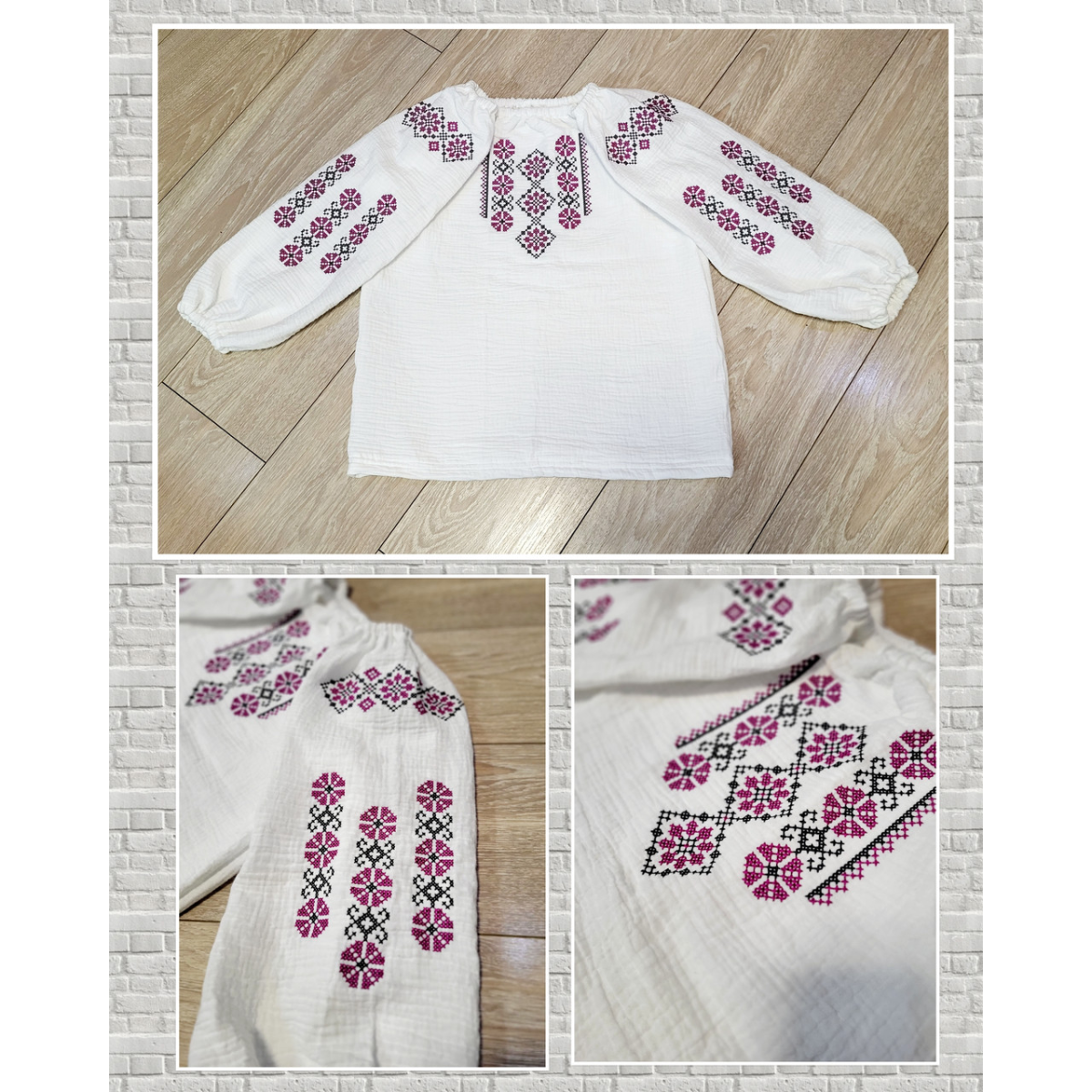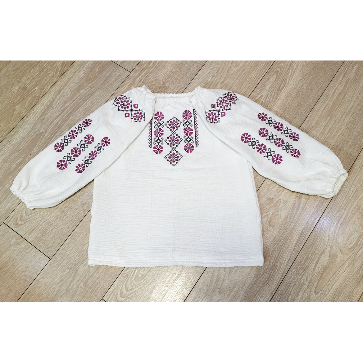 Вишиванка дитяча малинова Ксенія з мусліну, бавовна, натуральна тканина