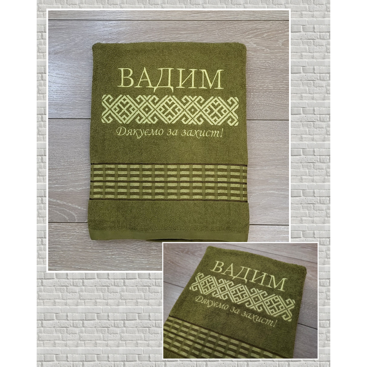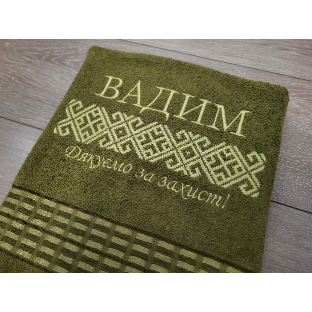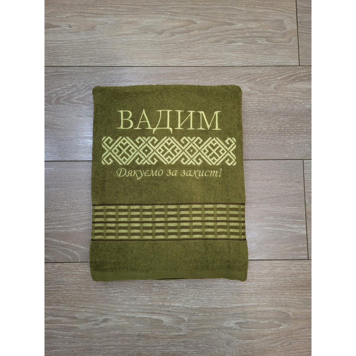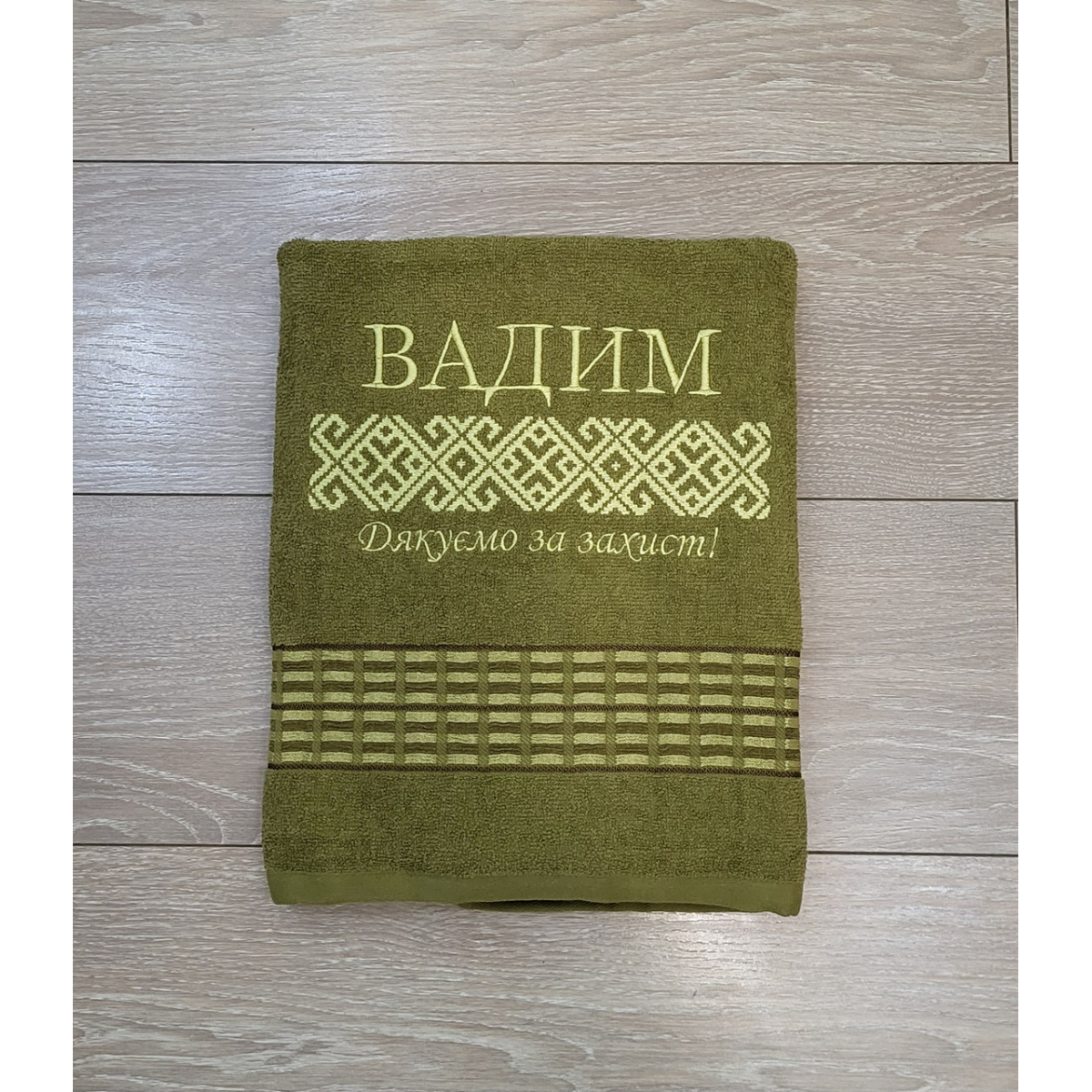 Іменний банний рушник бавовна 70х140см Вадим хакі вишиванка