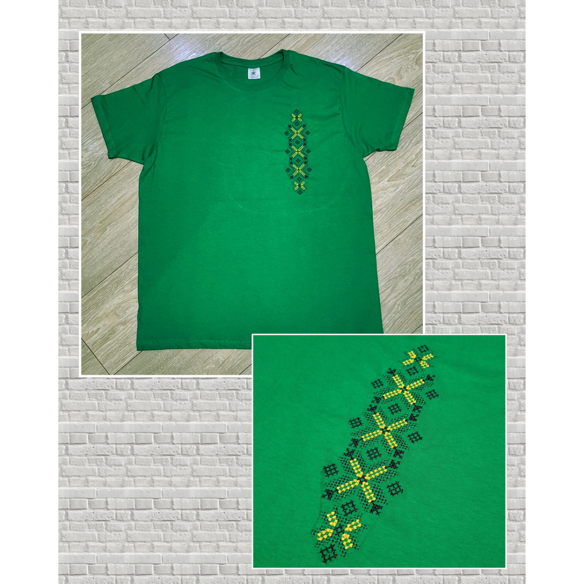 Футболка-вишиванка пряма Алекс зелена 100% бавовна