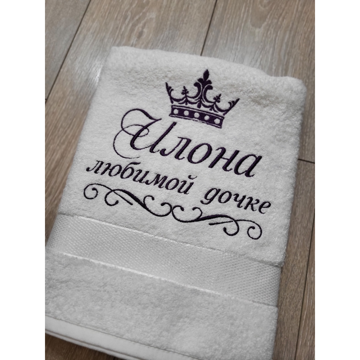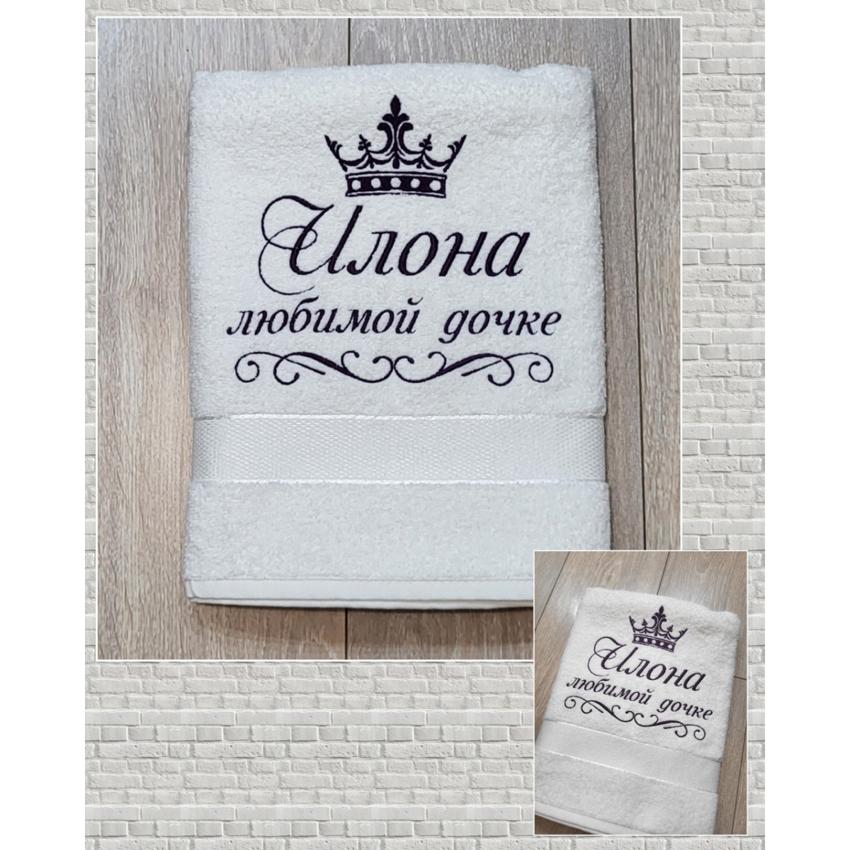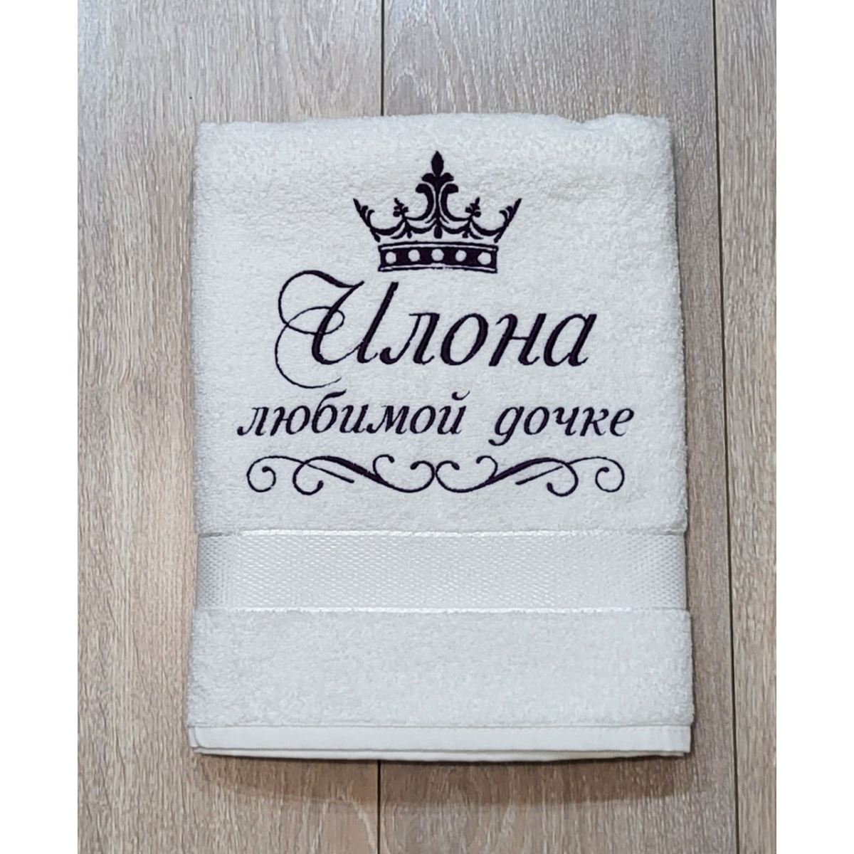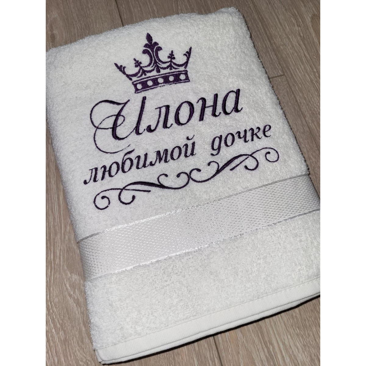 Іменний банний рушник бавовна 70х140см Ілона білий