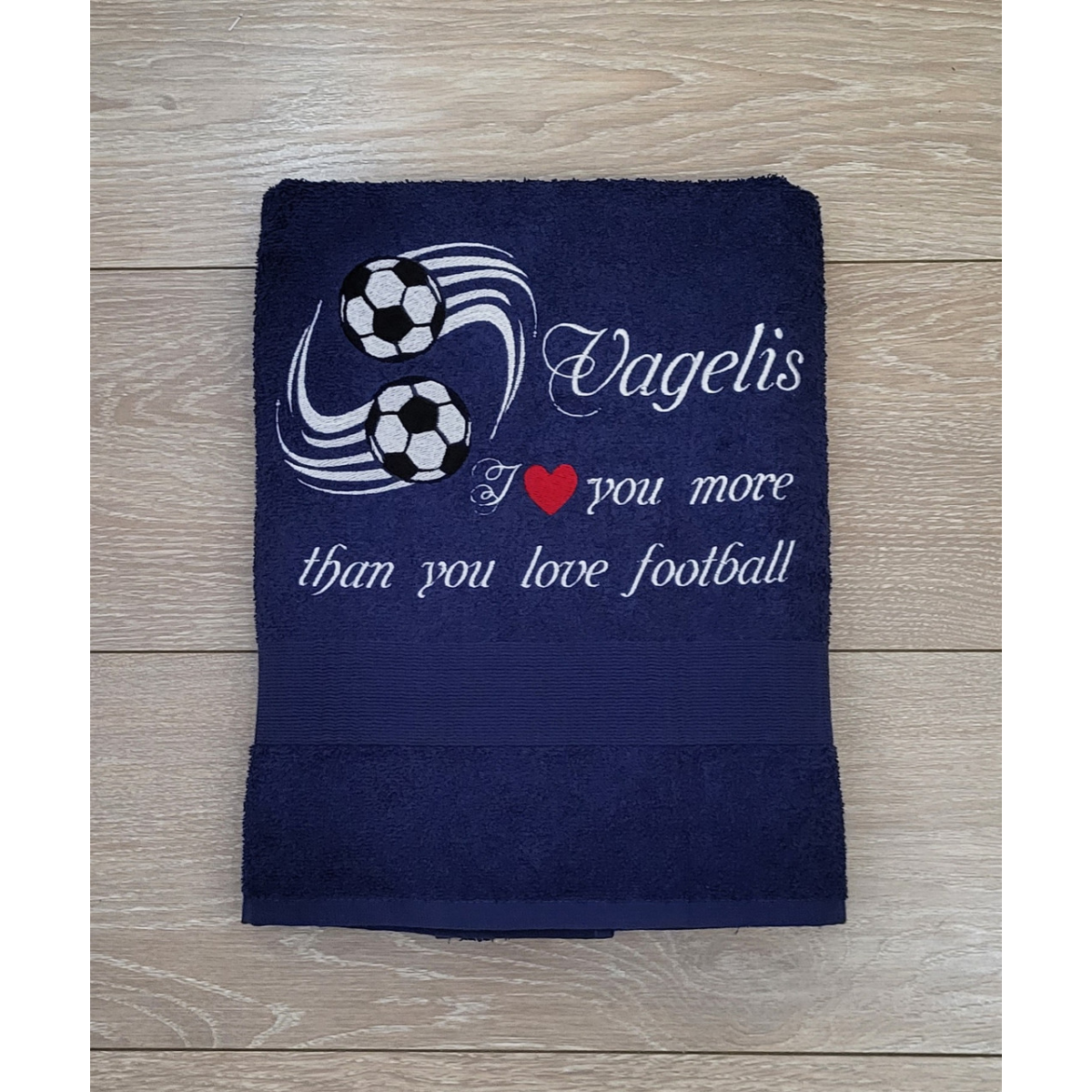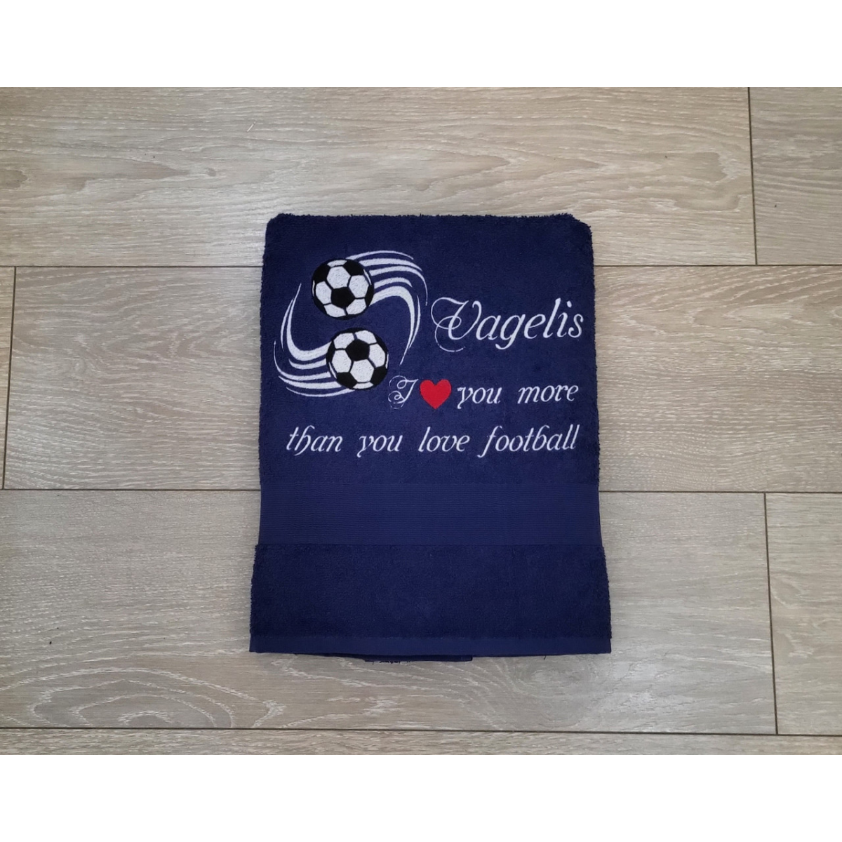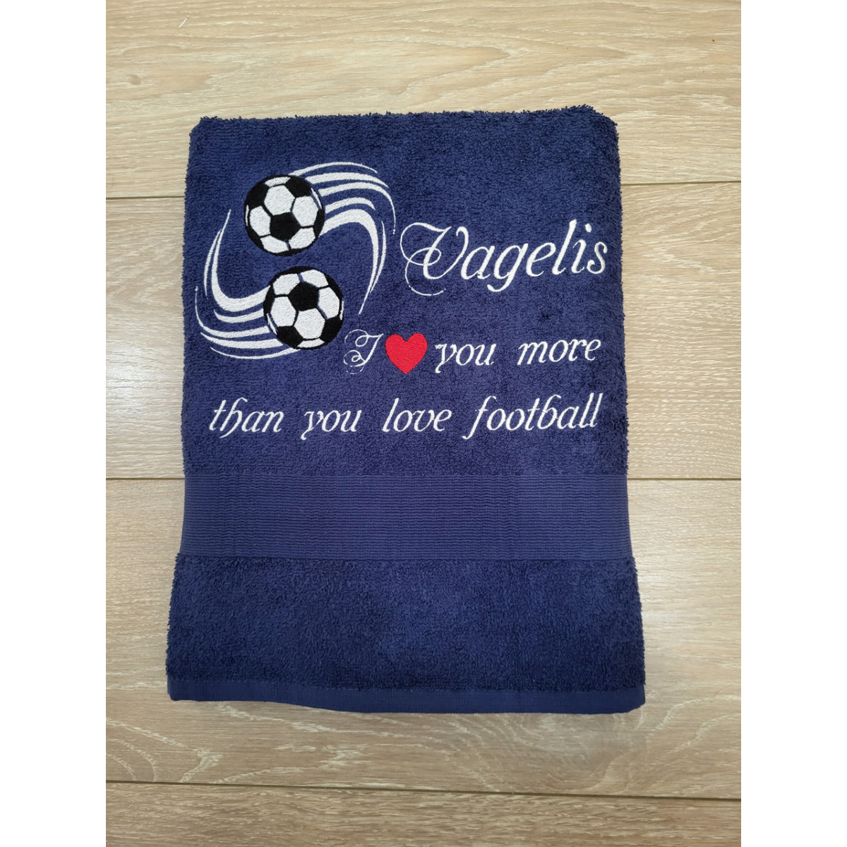 Іменний банний рушник бавовна 70х140см футбол темно-синій