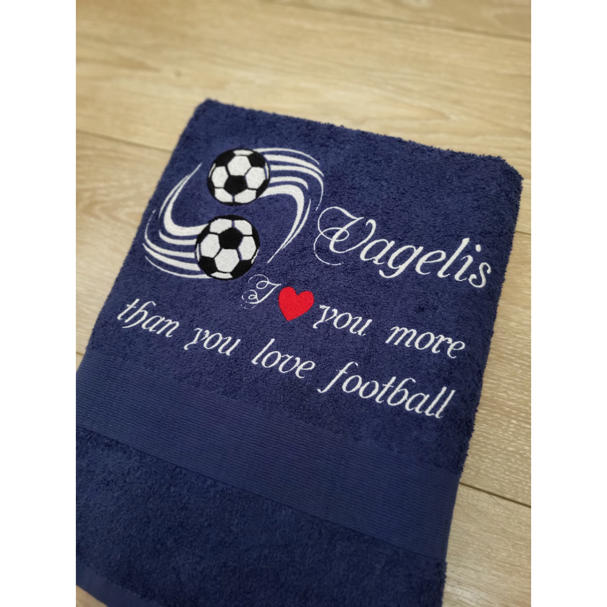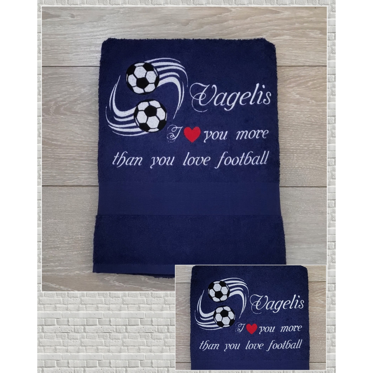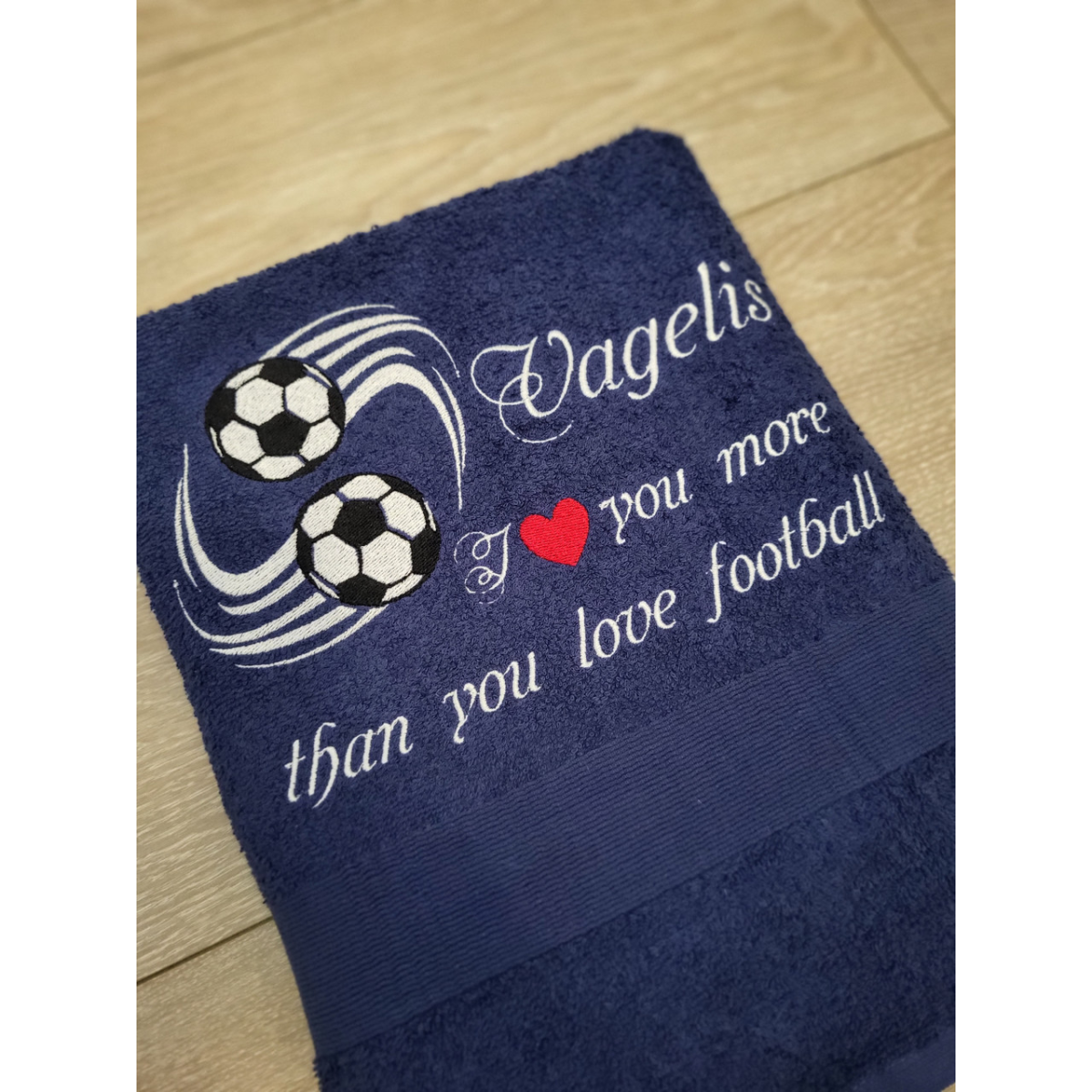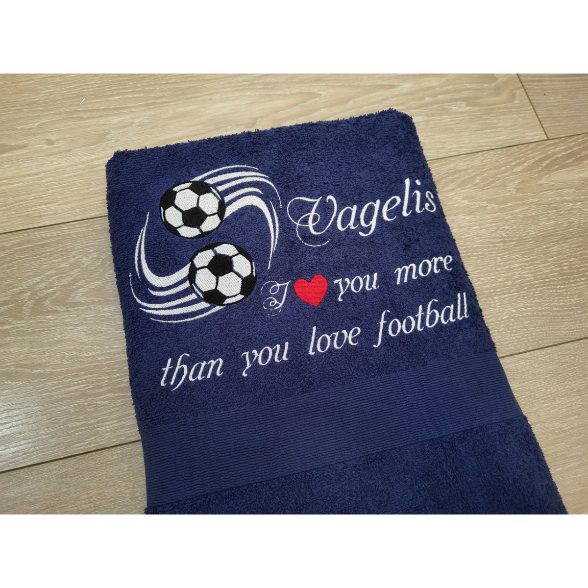 Іменний банний рушник бавовна 70х140см футбол темно-синій