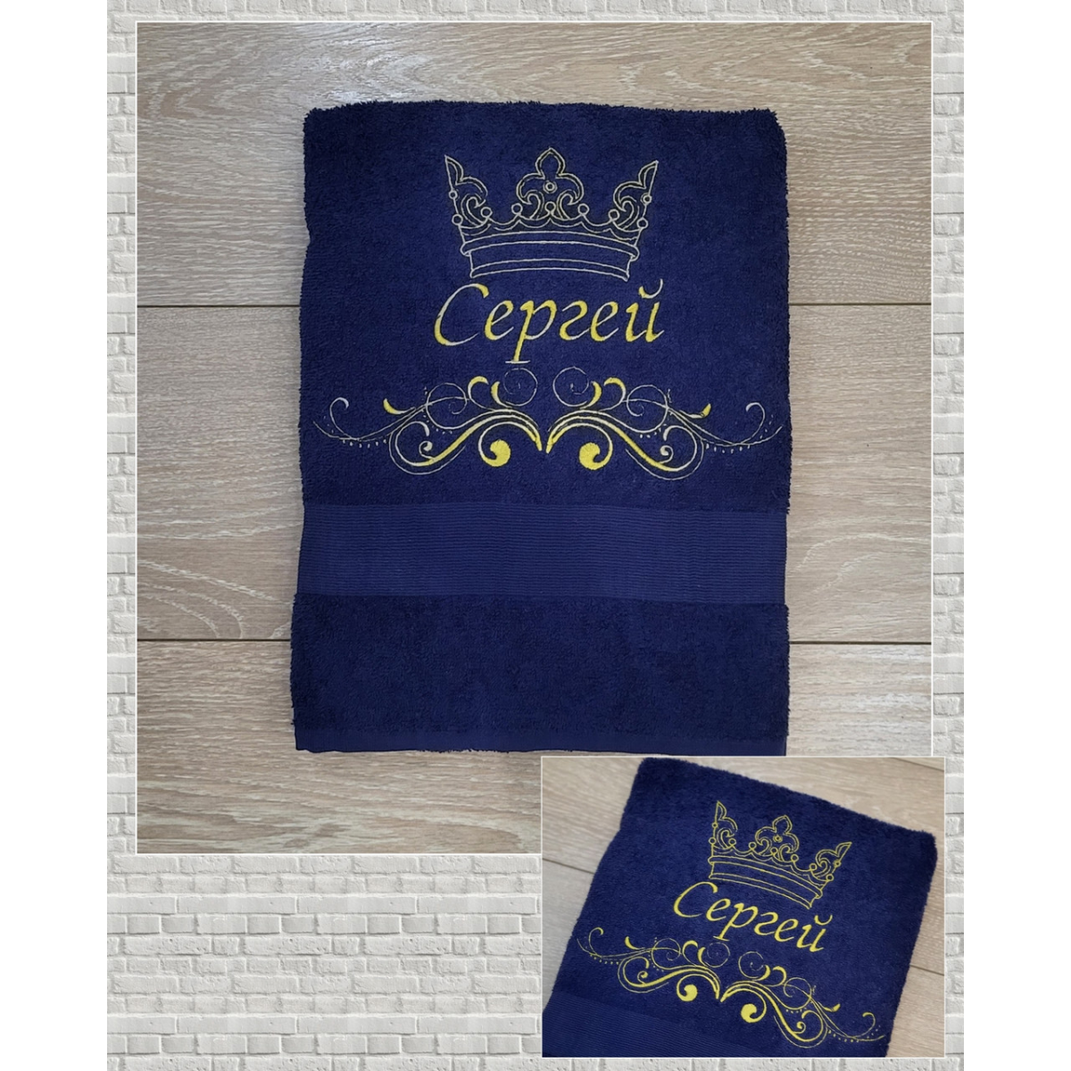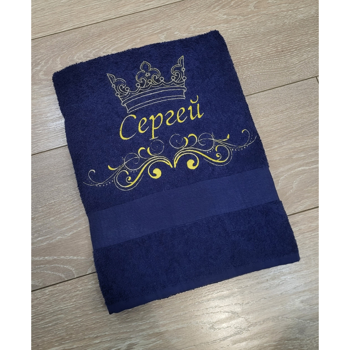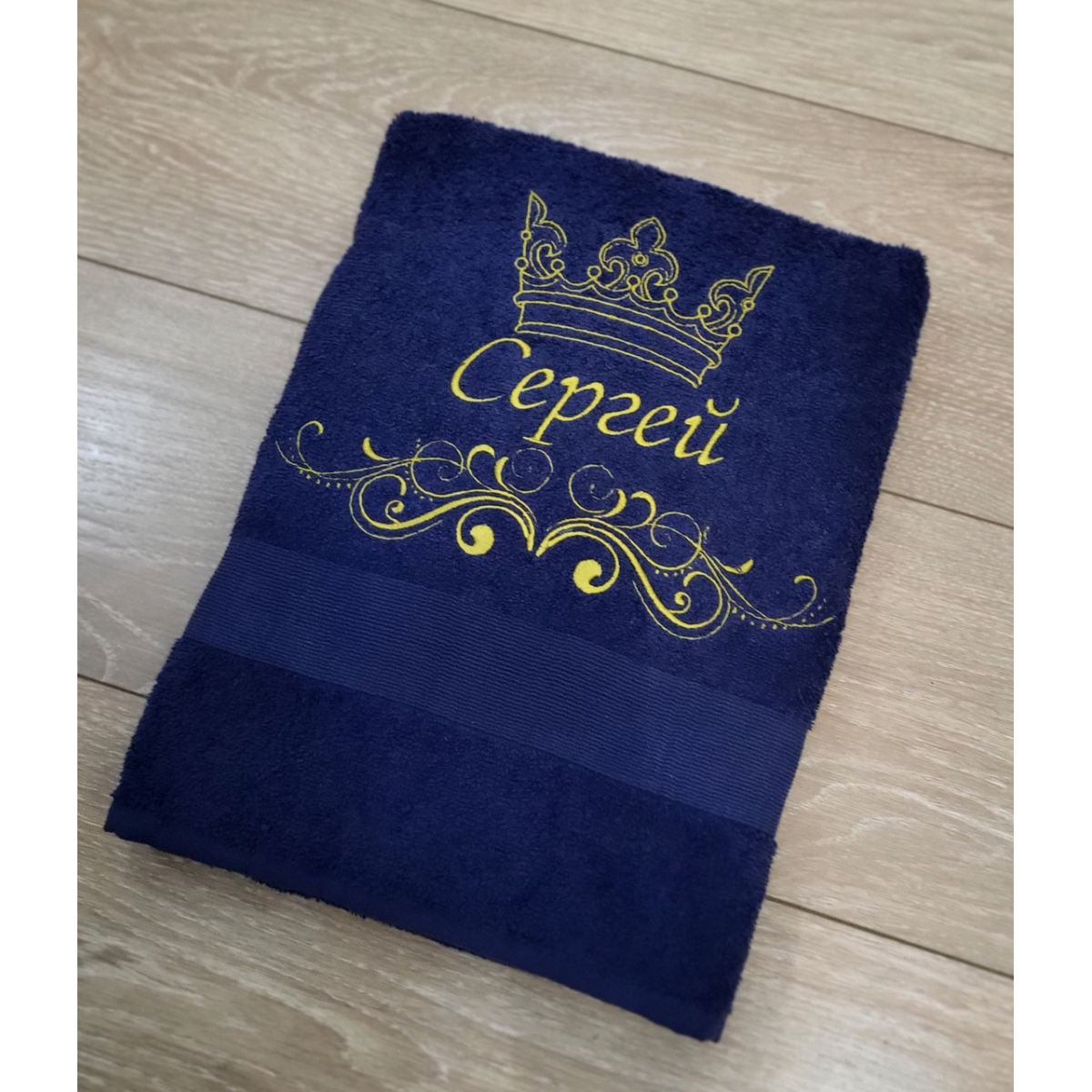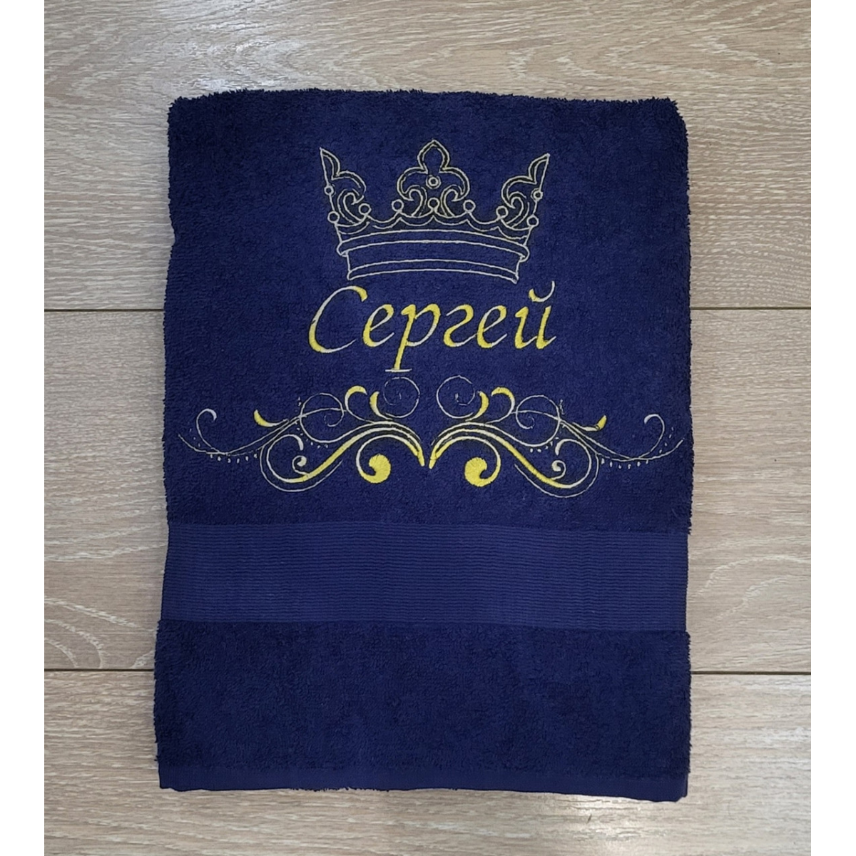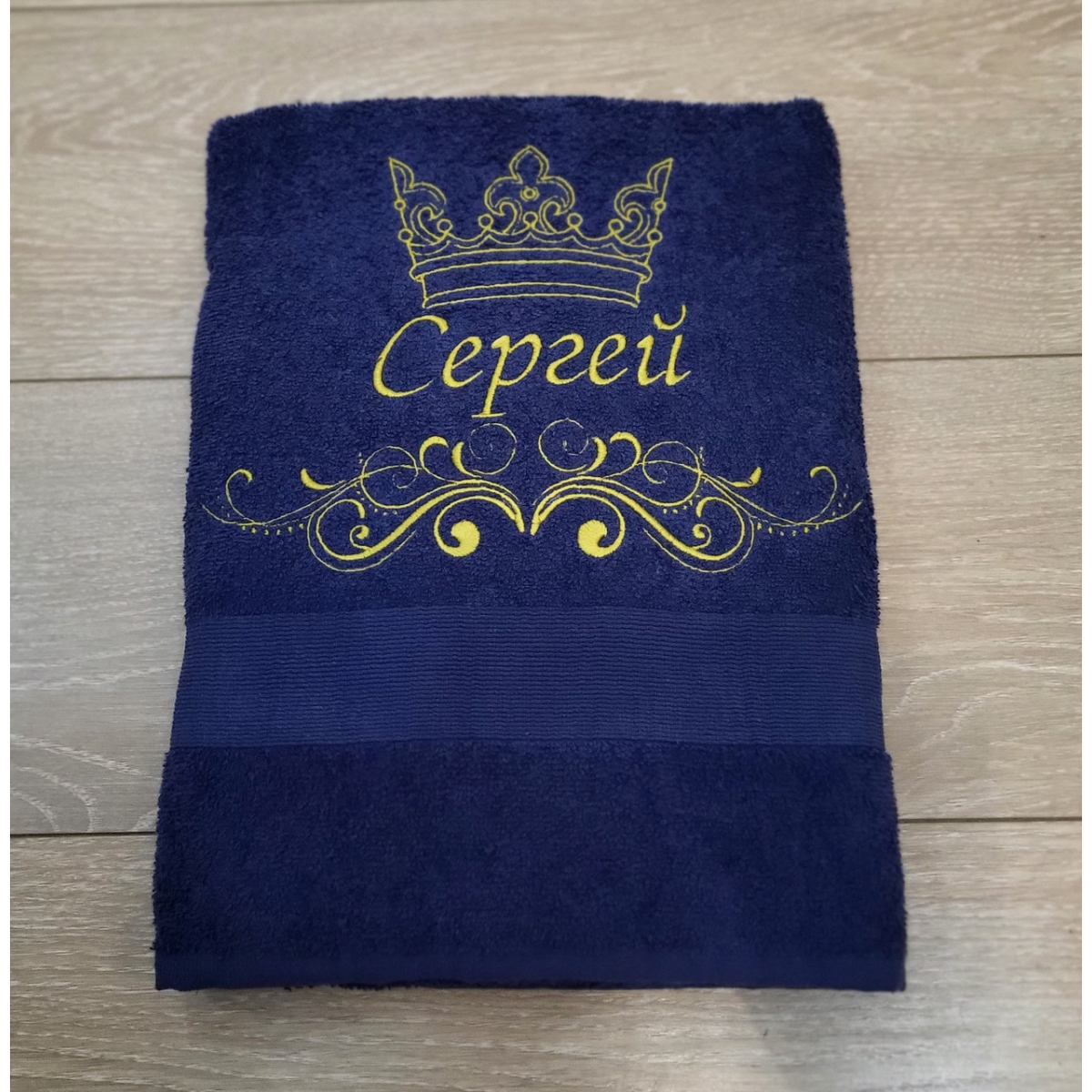Іменний банний рушник бавовна 70х140см Сергій темно-синій